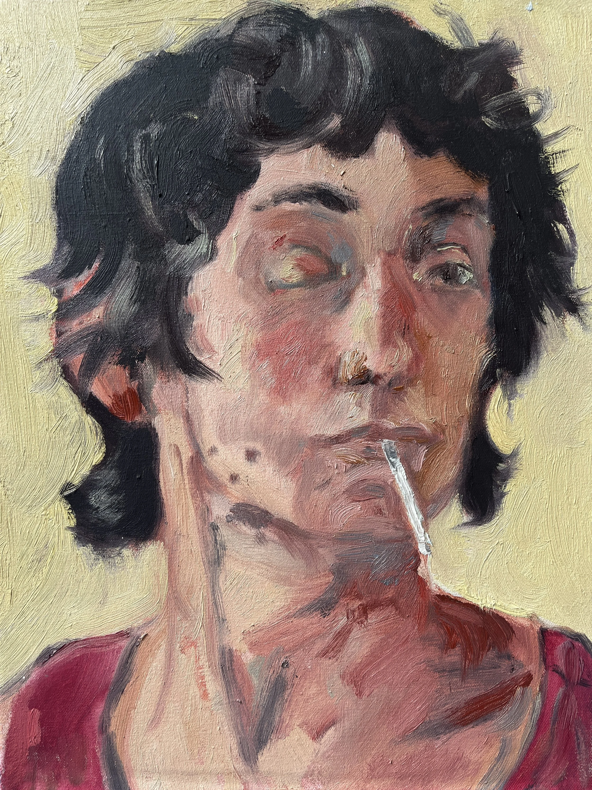 Blouse, Bulletin, Bistrot and Baluchon, Oil on canvas, 40cm x 30cm